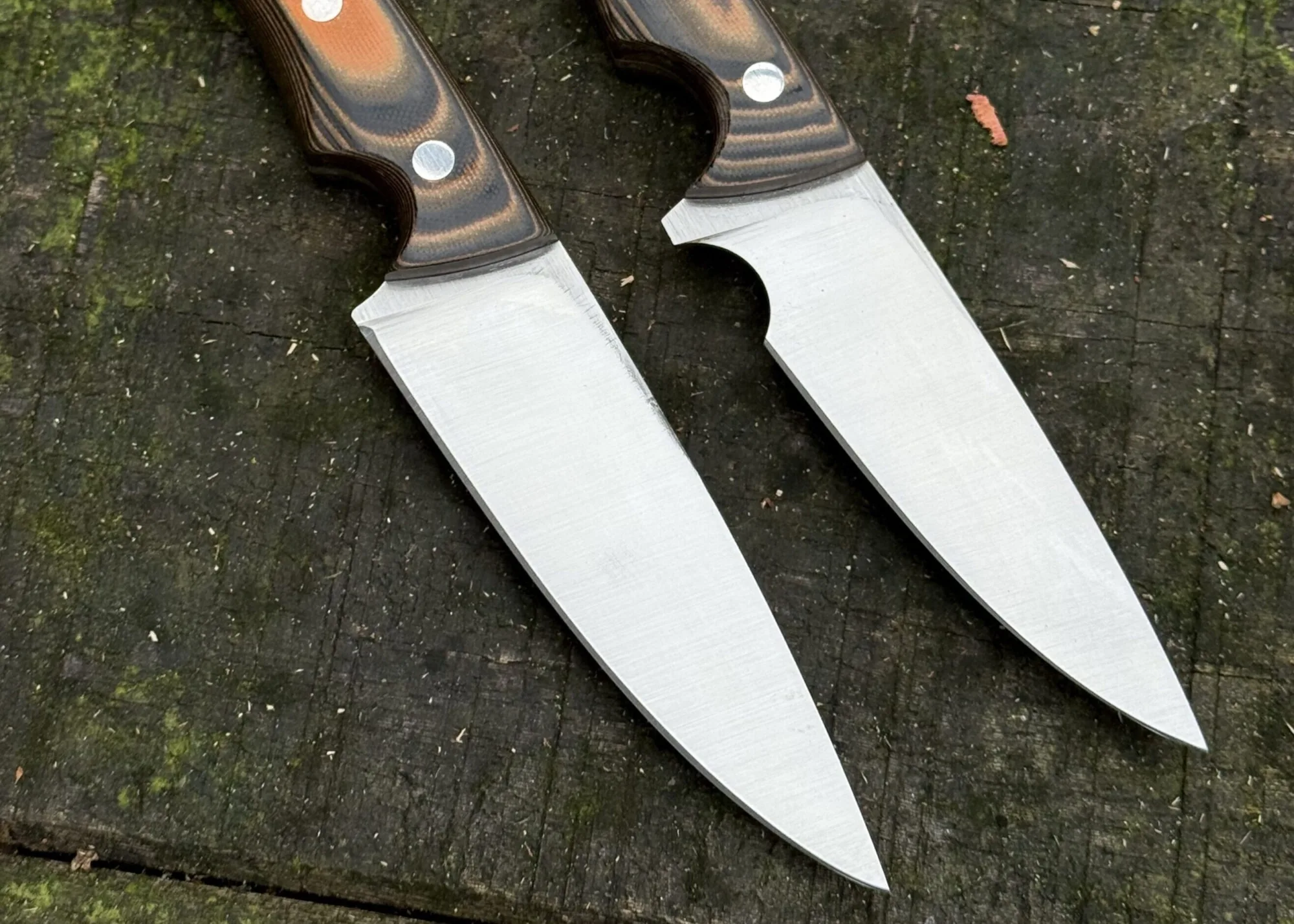 Vervolgens wordt het handvat naar keuze gemonteerd en in vorm gebracht. Door het handvat te schuren en polijsten komt de ware schoonheid van het hout of composiet tevoorschijn. Een wauw momentje! Tot slot wordt het mes haarscherp geslepen! Door de vakkundige begeleiding, het gebruik van kwalitatief hoogwaardige materialen en de beste machines garanderen we een eersteklas eindresultaat dat er niet alleen beeldschoon uit ziet, maar ook zeer goede materiaaleigenschappen heeft, scherp is, en een hardheid heeft van HRC 60-61!