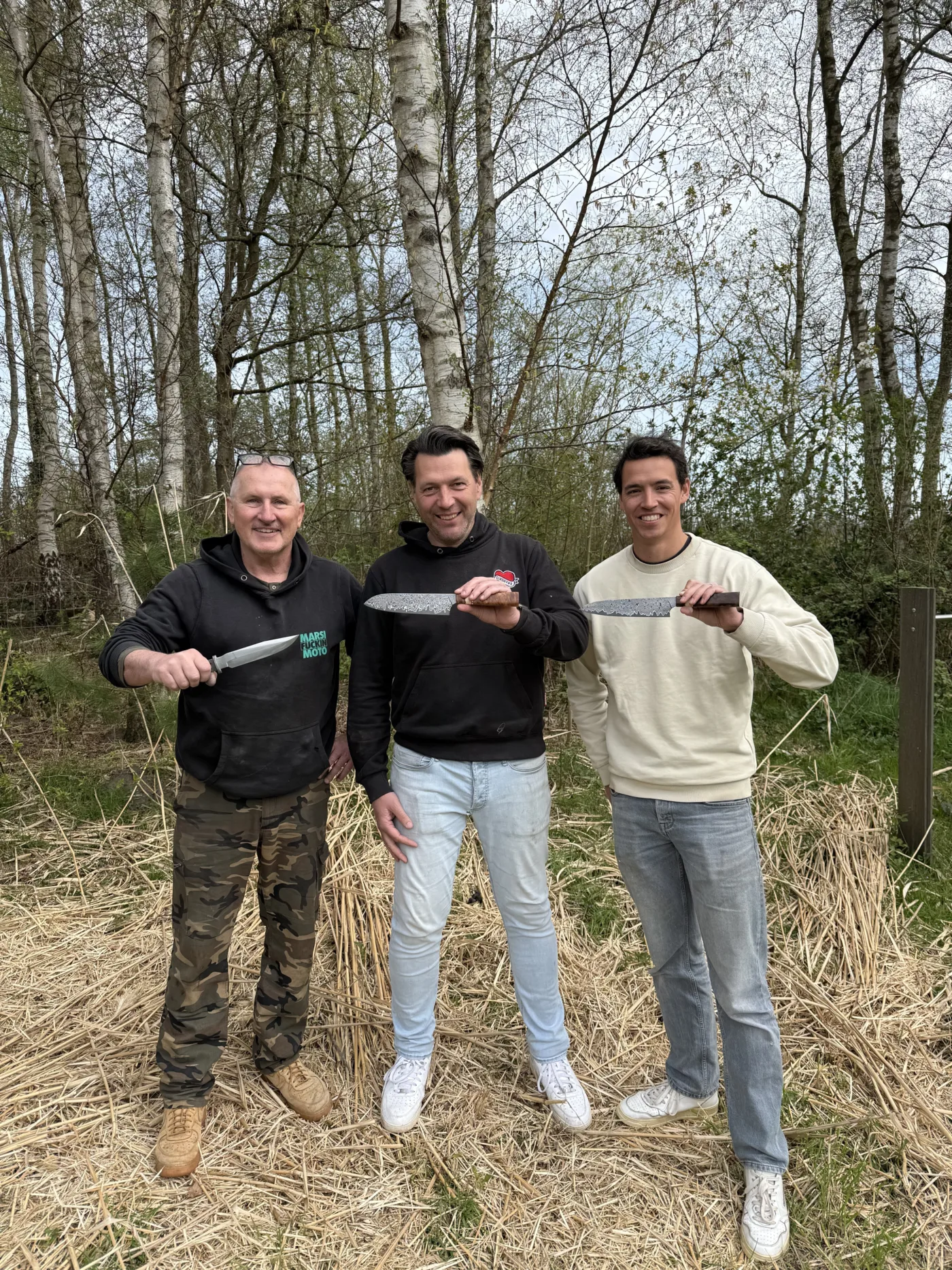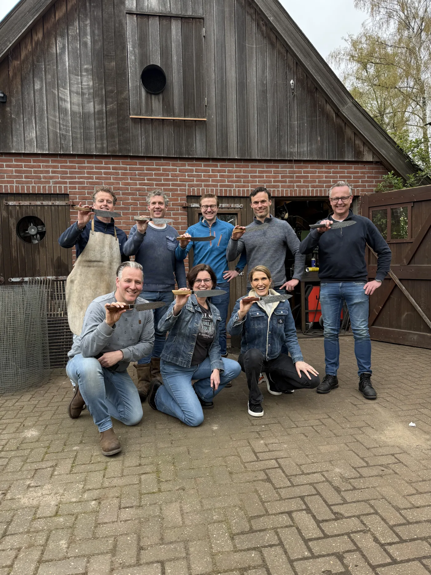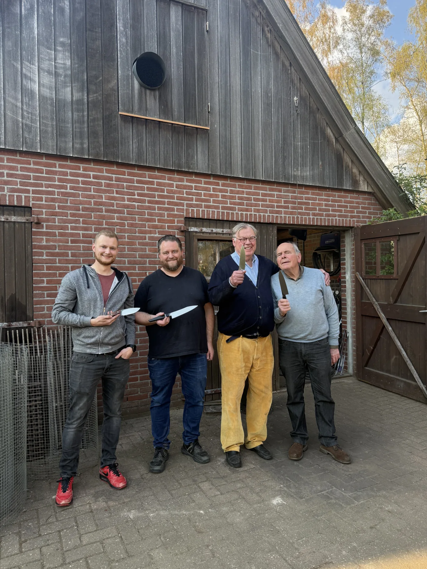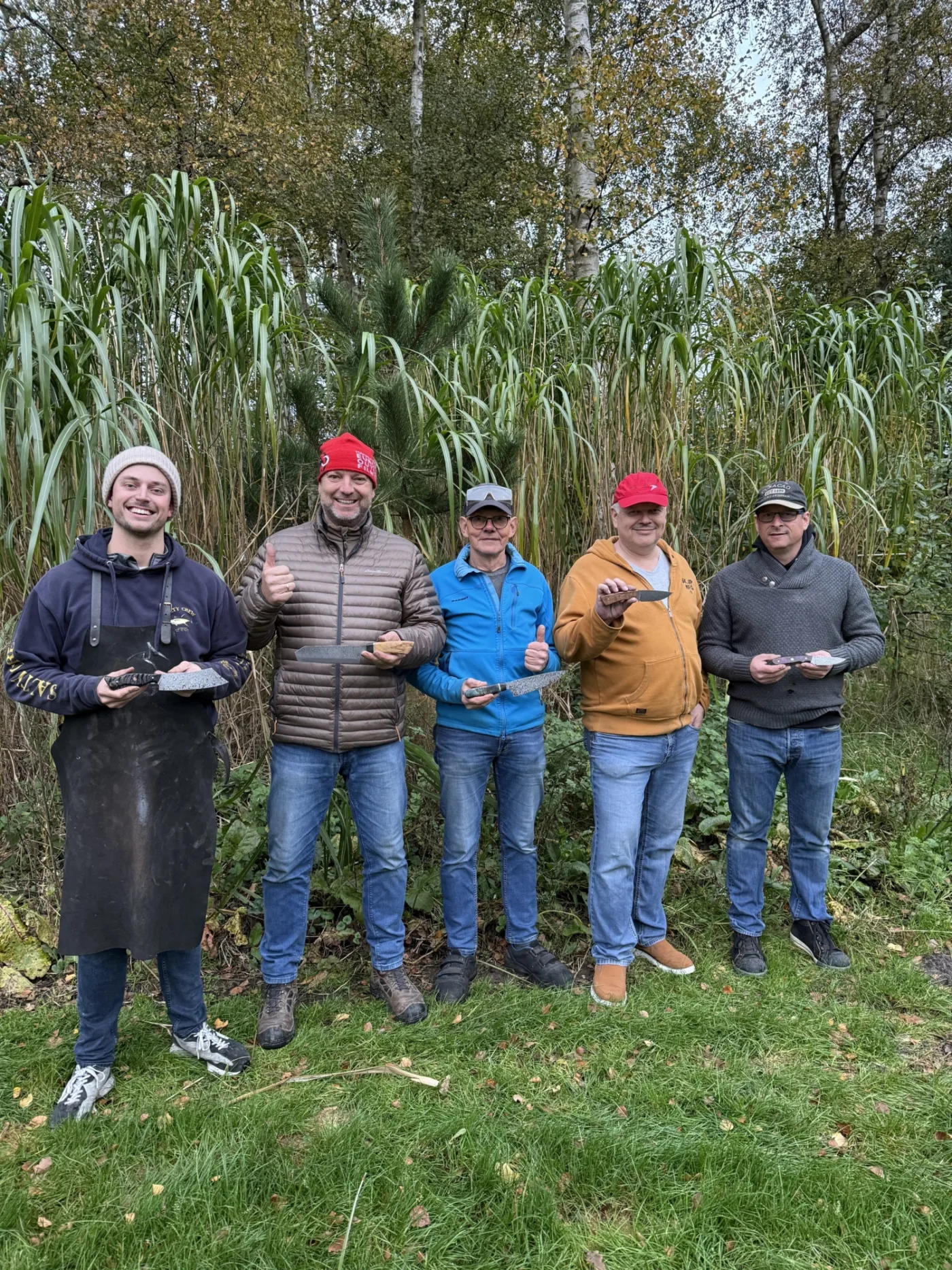 "Ralf, Jan, Martien und ich haben erfolgreich unser erstes Messer bei Ruig in Holland geschmiedet. Unser Ergebniss kann kann sich mehr als sehen lassen. Danke an Gerwin. LG Horst"